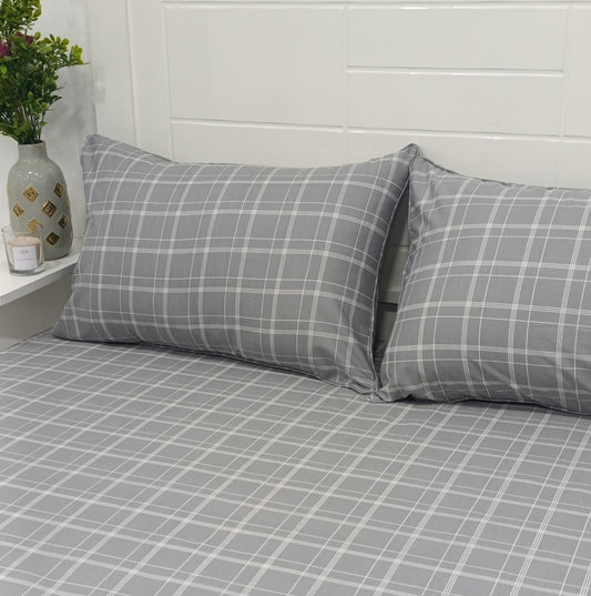 طقم ملاءات سرير قطنية - 3 قطع - نقشة مربعات