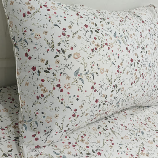 طقم شرشرف سرير قطن مطبوعة - 3 قطع - زهور حمراء