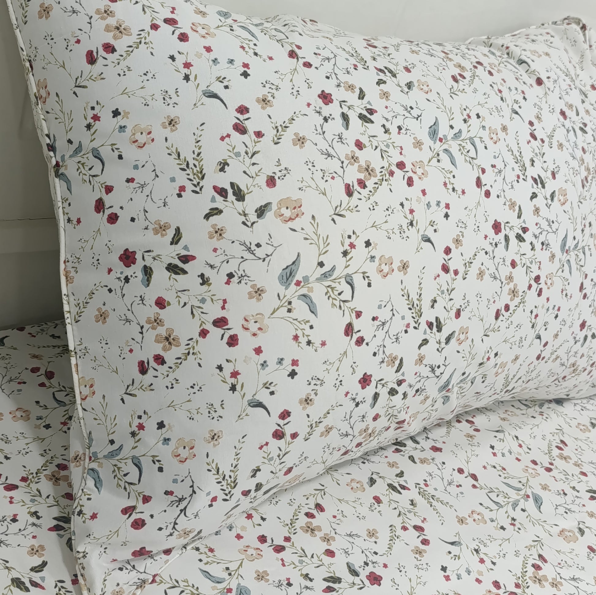 طقم شرشرف سرير قطن مطبوعة - 3 قطع - زهور حمراء