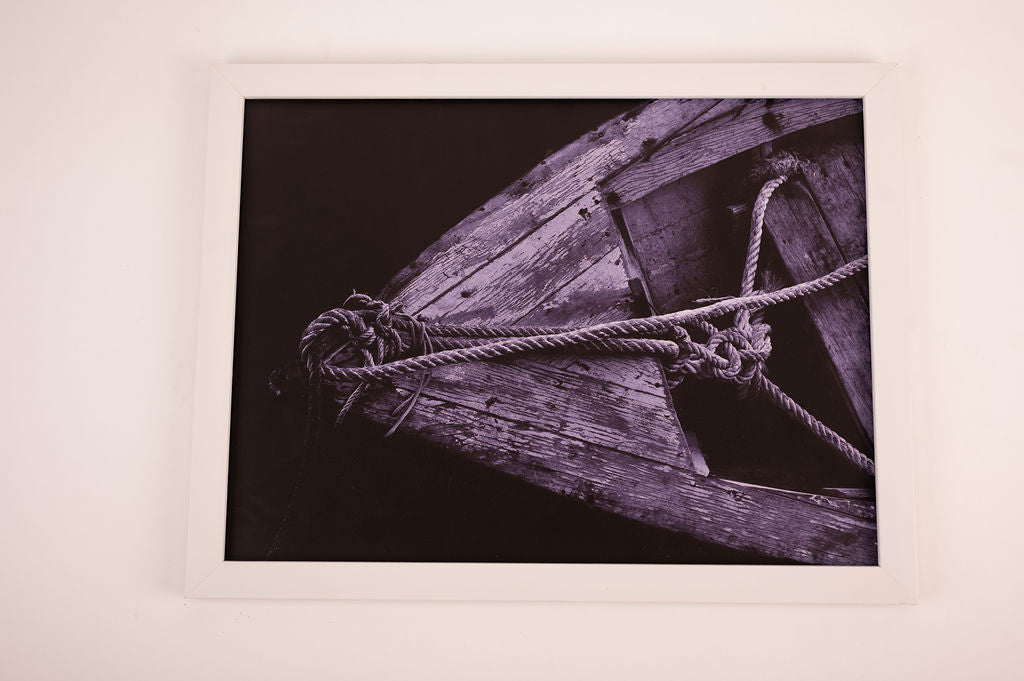 Reel in some nautical style with our Fisherman Boat Tableau. This black and white photograph captures a close-up view of a small fisherman boat in port, adding a touch of maritime charm to any wall. Hang it up and let it make a splash in your decor!