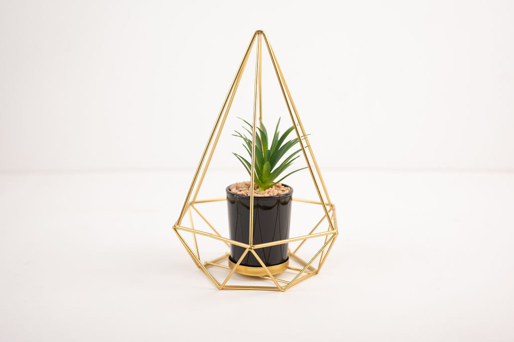 Add a touch of whimsy to your home with Topaz - the perfect blend of faux and fancy. This artificial plant, in a metal golden frame, features a diamond shape that will bring shine and charm to any space. The perfect addition to your home decor!