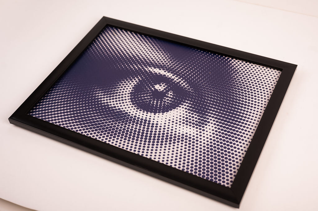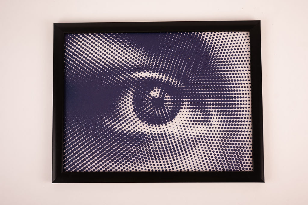 Get a closer look with this Tableau featuring a unique human eye illustration made entirely of halftone patterns. Perfect for adding a stylish and intriguing element to any wall. See things in a whole new way with Look Closer Tableau.