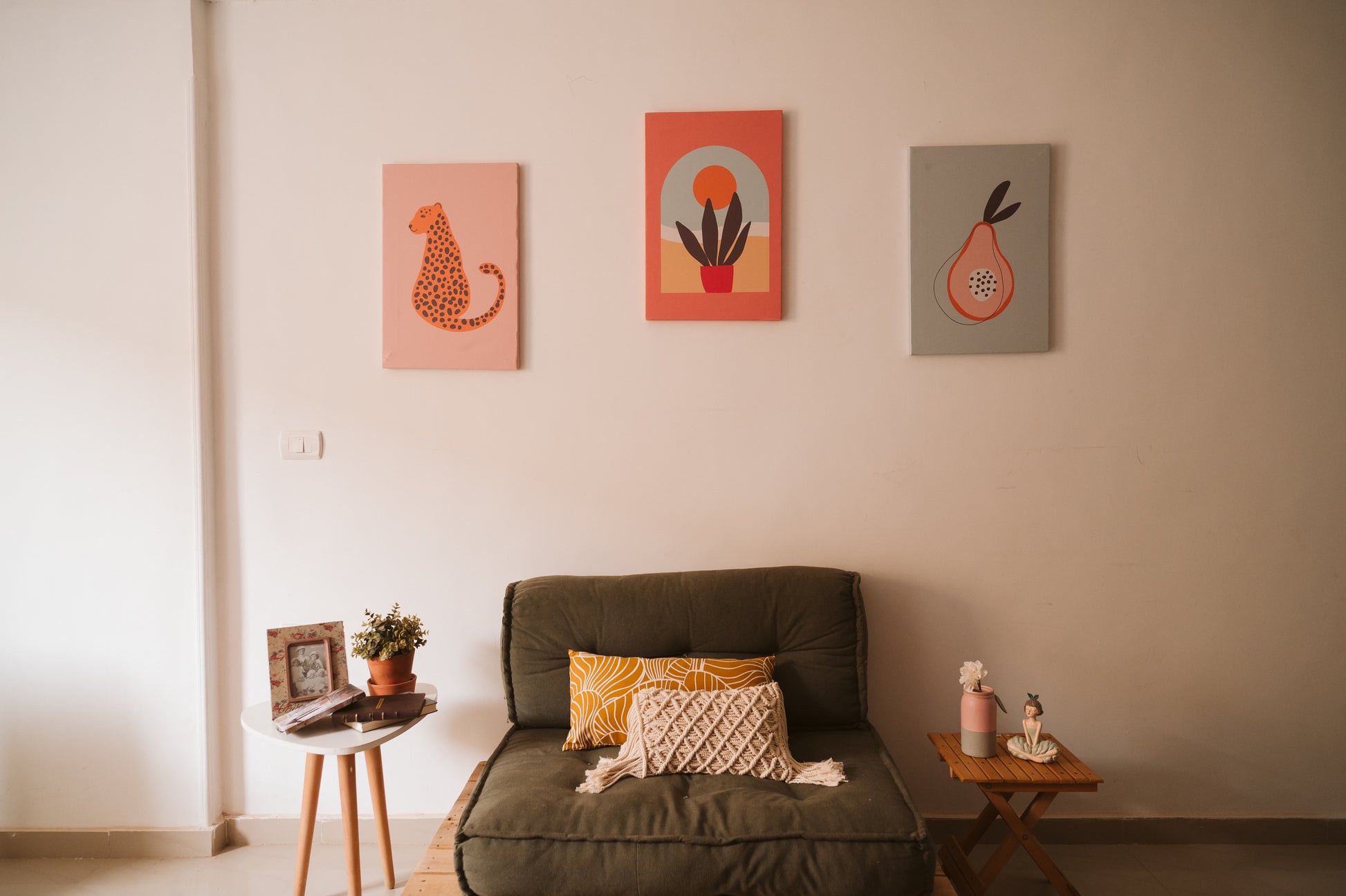 Set of 3 Minimal Nature art canvas tableau