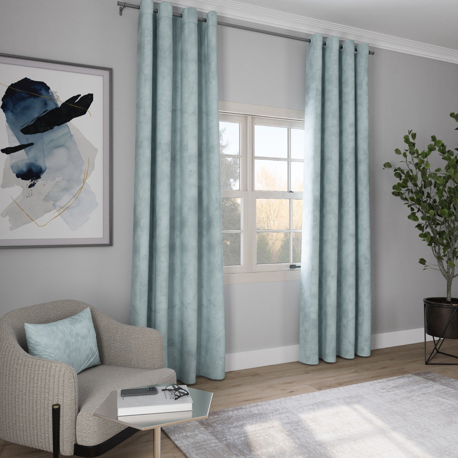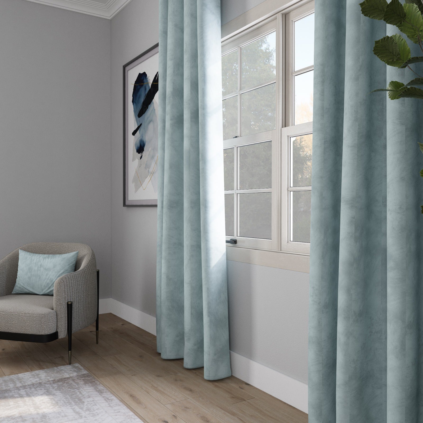 Velvet Curtain - Mint Green